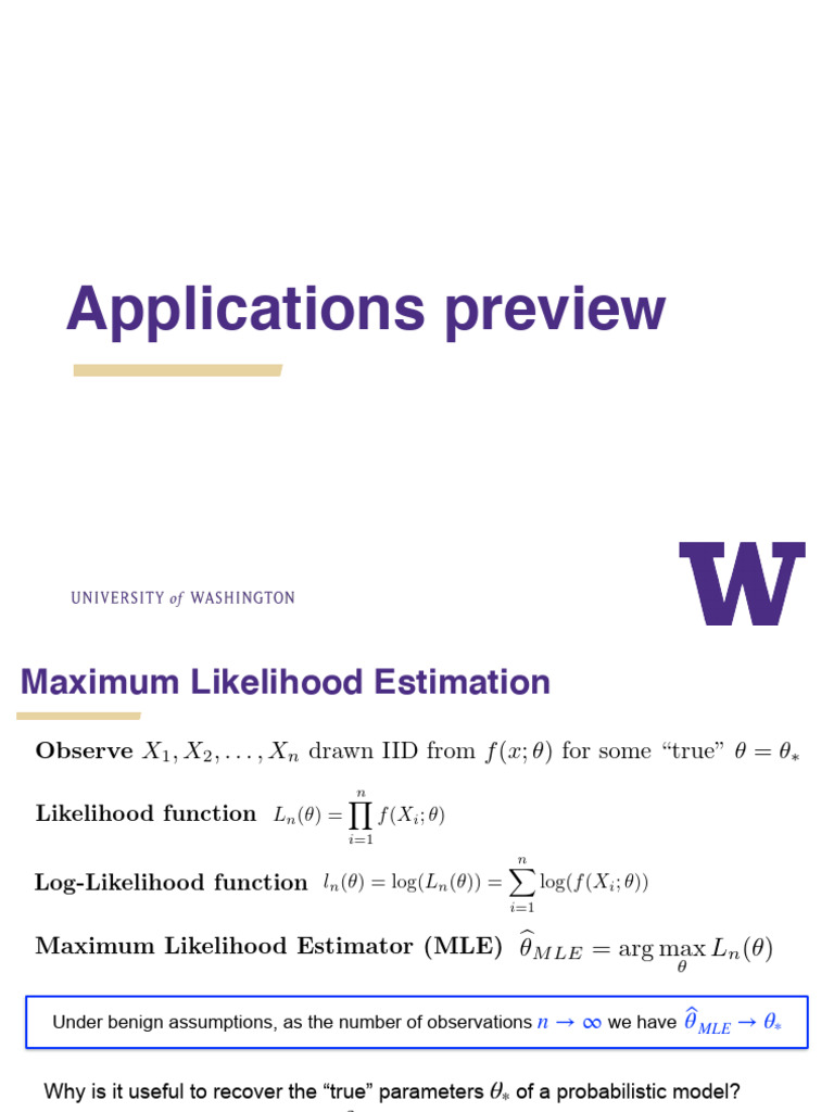 Log-Likelihood function ln (✓) = log(Ln (✓)) = log(f (Xi ; ✓))