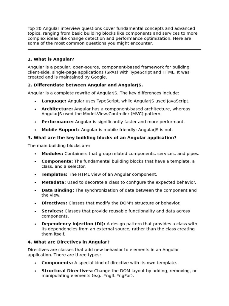 Top 20 Angular interview questions cover fundamental concepts and advanced