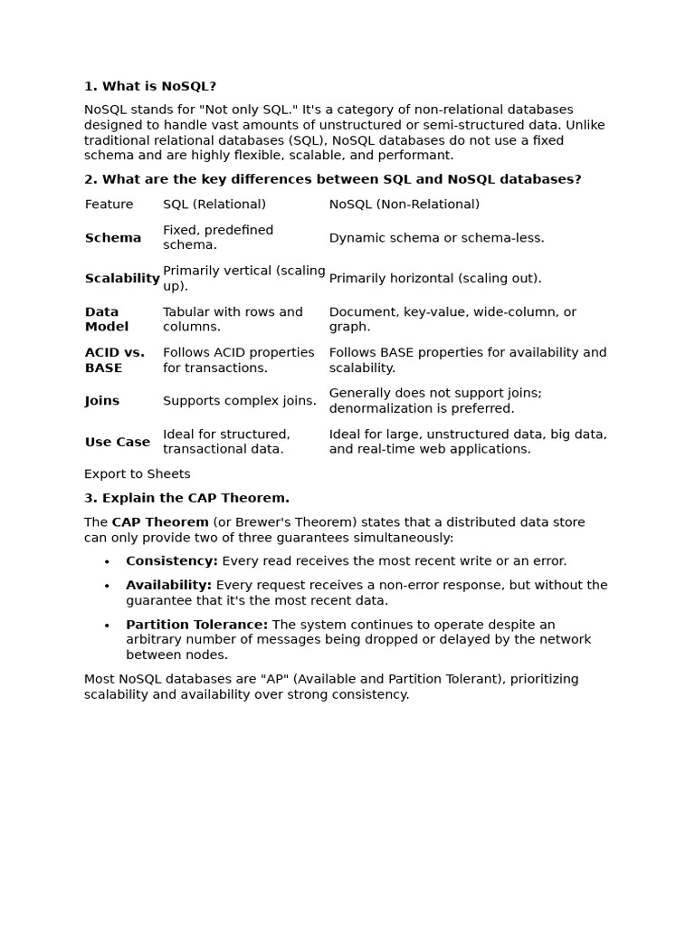 Most NoSQL databases are "AP" (Available and Partition Tolerant), prioritizing