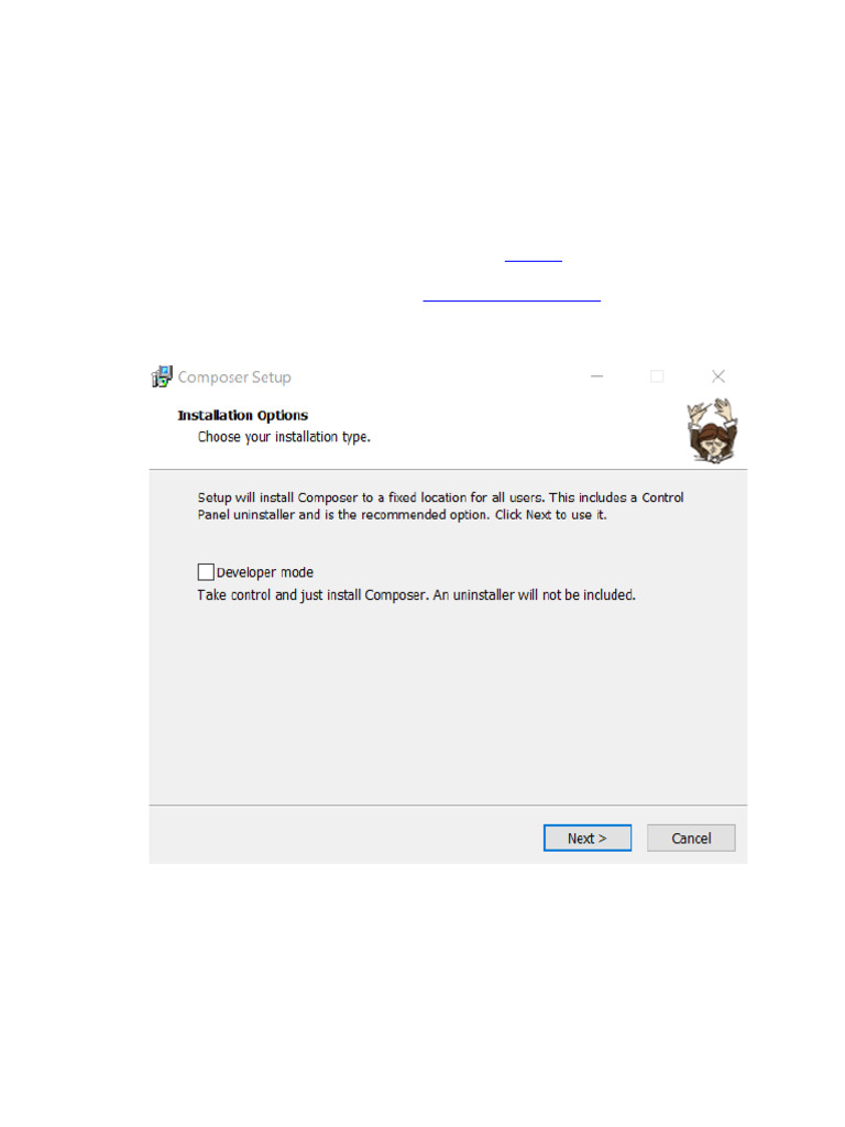 3. Run Composer installation wizard. When it asks you to activate the developer mode,