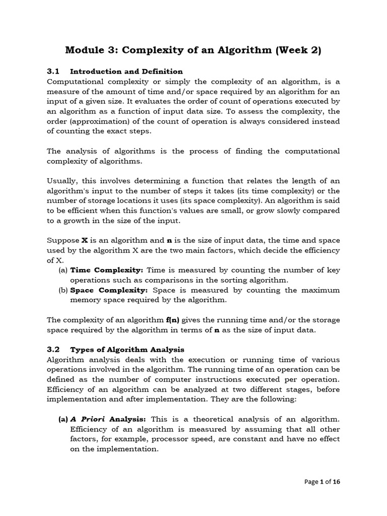 The complexity of an algorithm f(n) gives the running time and/or the storage