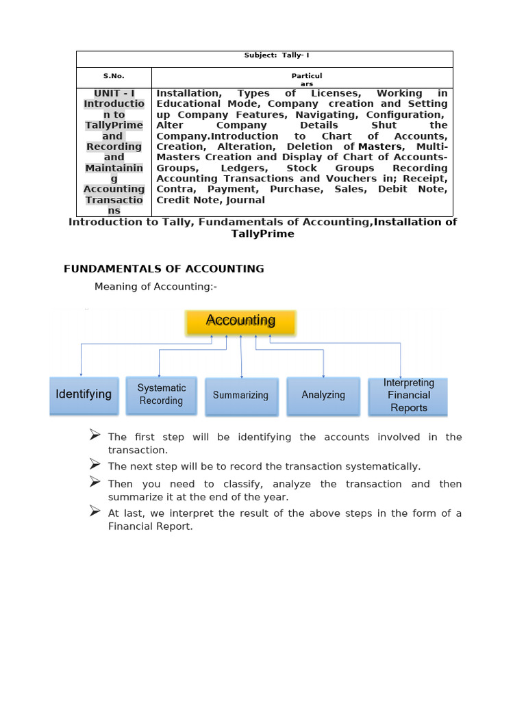 Introduction to Tally, Fundamentals of Accounting,Installation of