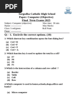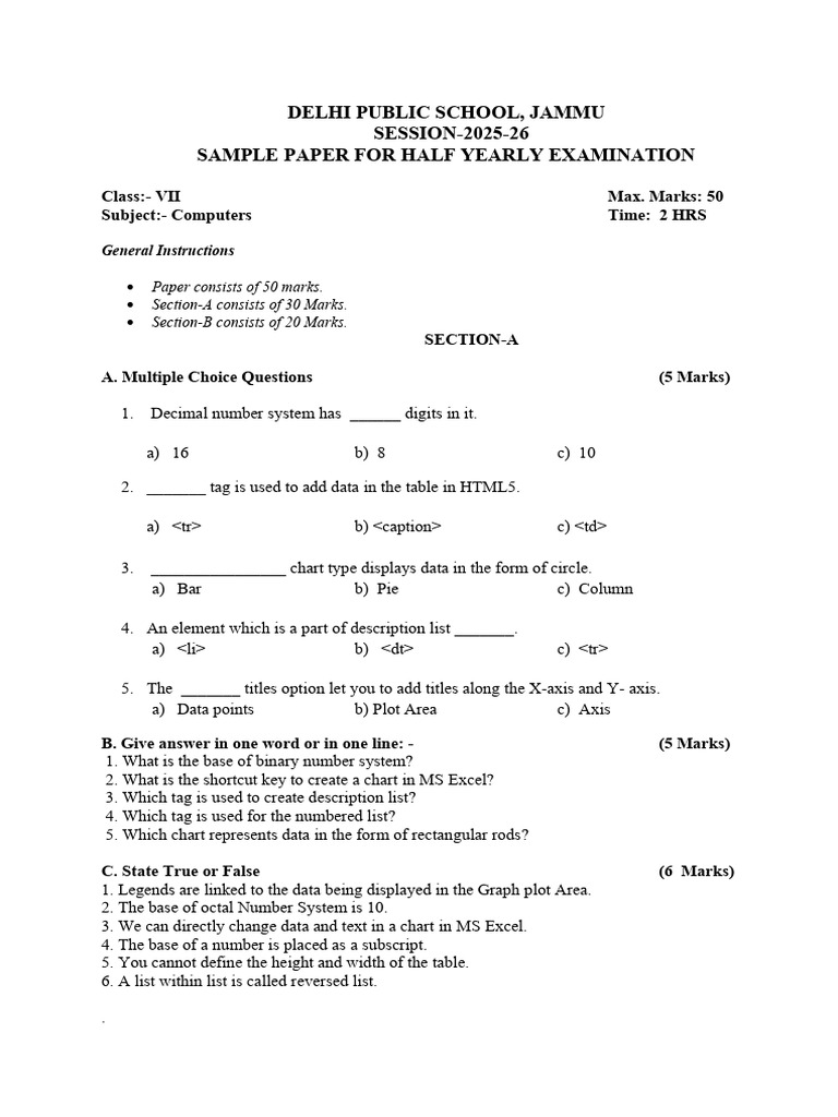 SAMPLE PAPER FOR HALF YEARLY EXAMINATION