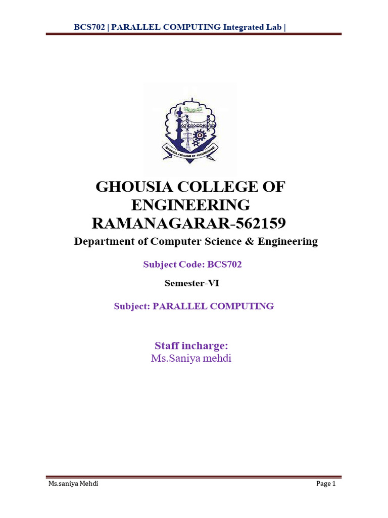 BCS702 | PARALLEL COMPUTING Integrated Lab |