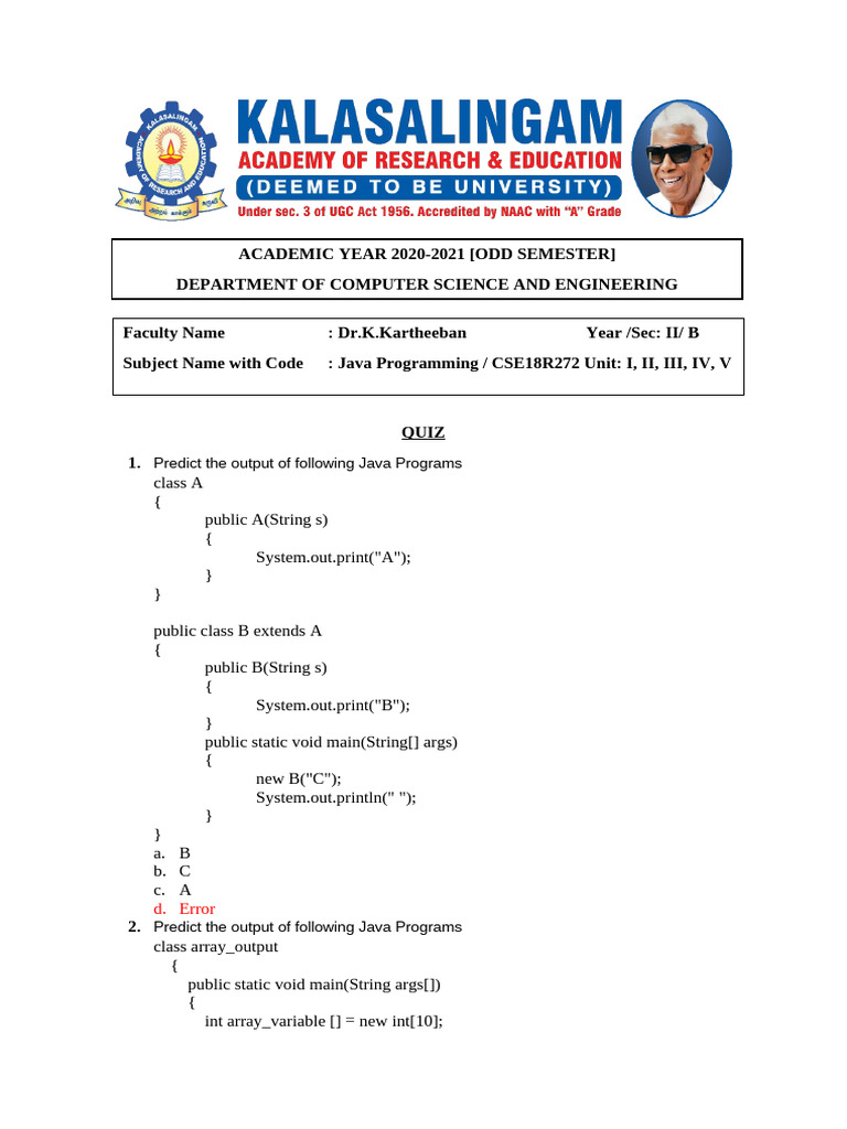 2. Predict the output of following Java Programs