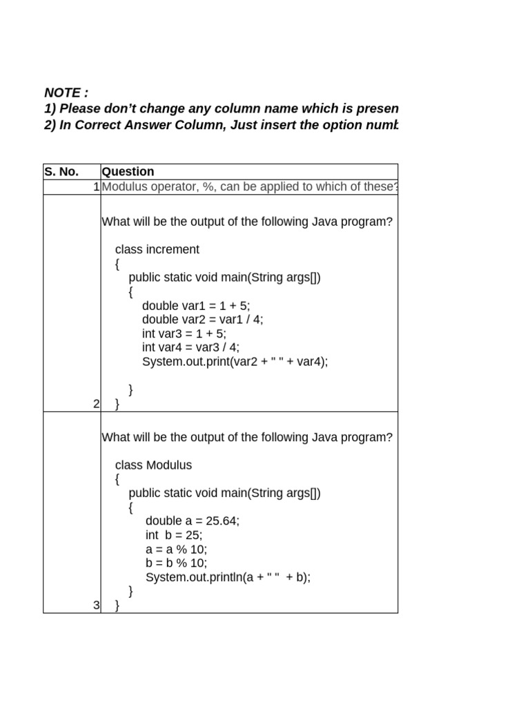 2) In Correct Answer Column, Just insert the option number which is correct. (F