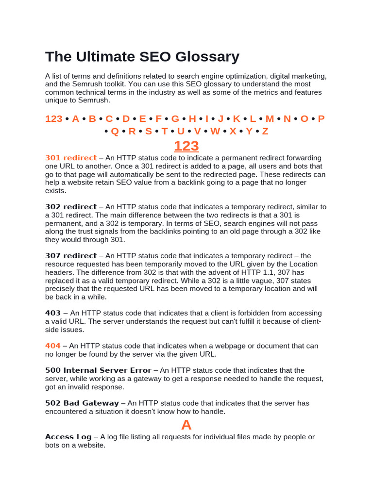 and the Semrush toolkit. You can use this SEO glossary to understand the most