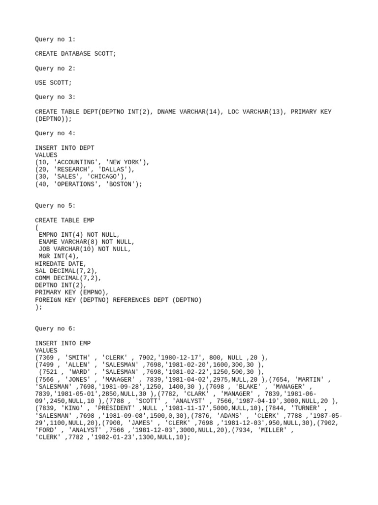 CREATE TABLE DEPT(DEPTNO INT(2), DNAME VARCHAR(14), LOC VARCHAR(13), PRIMARY KEY