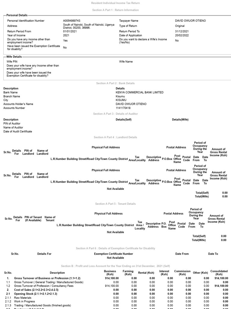 Details PIN of Tenant Name of Year