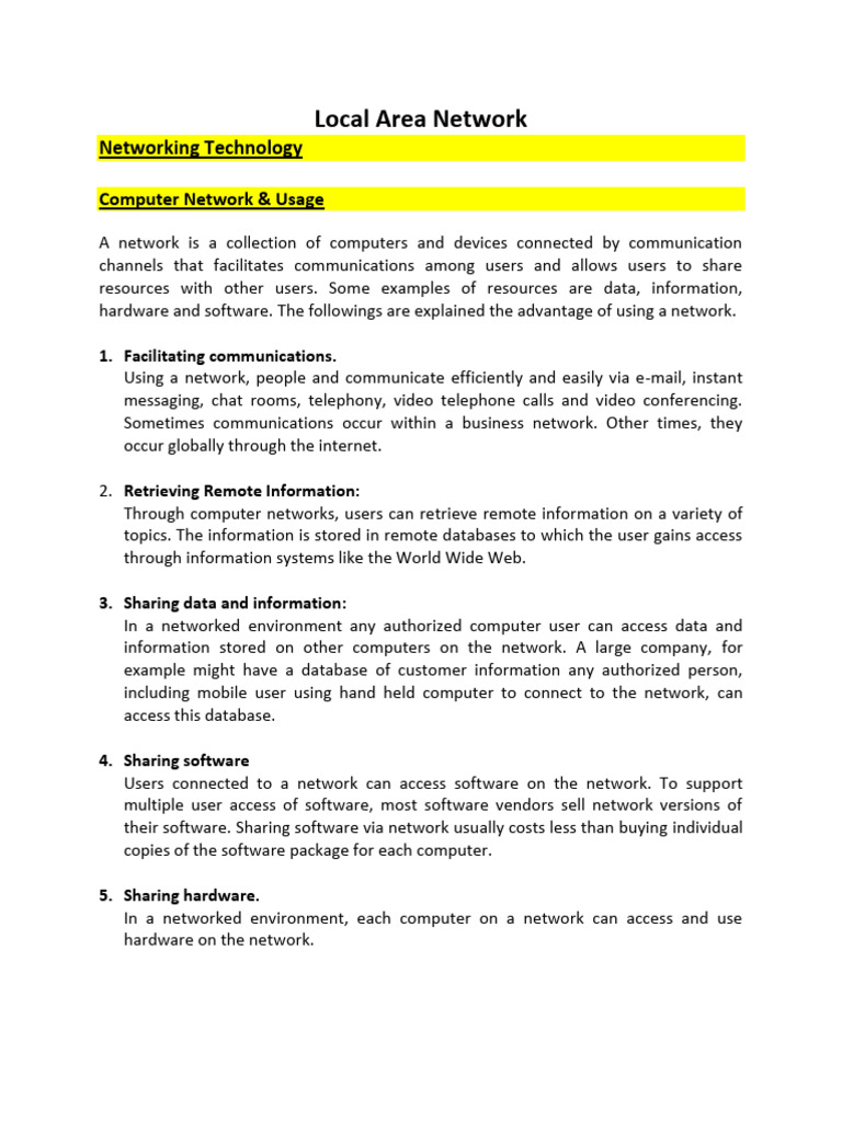 hardware and software. The followings are explained the advantage of using a network.