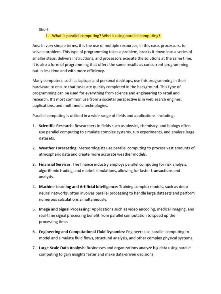 Ans: In very simple terms, it is the use of multiple resources, in this case, processors, to