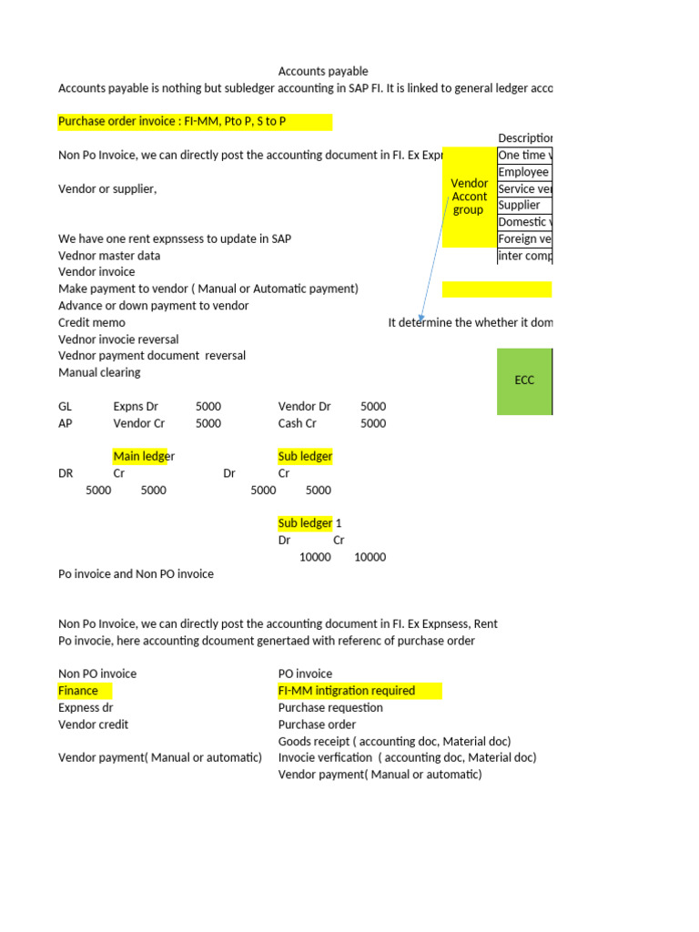 Accounts payable is nothing but subledger accounting in SAP FI. It is linked to general ledger accounting through main ledger a