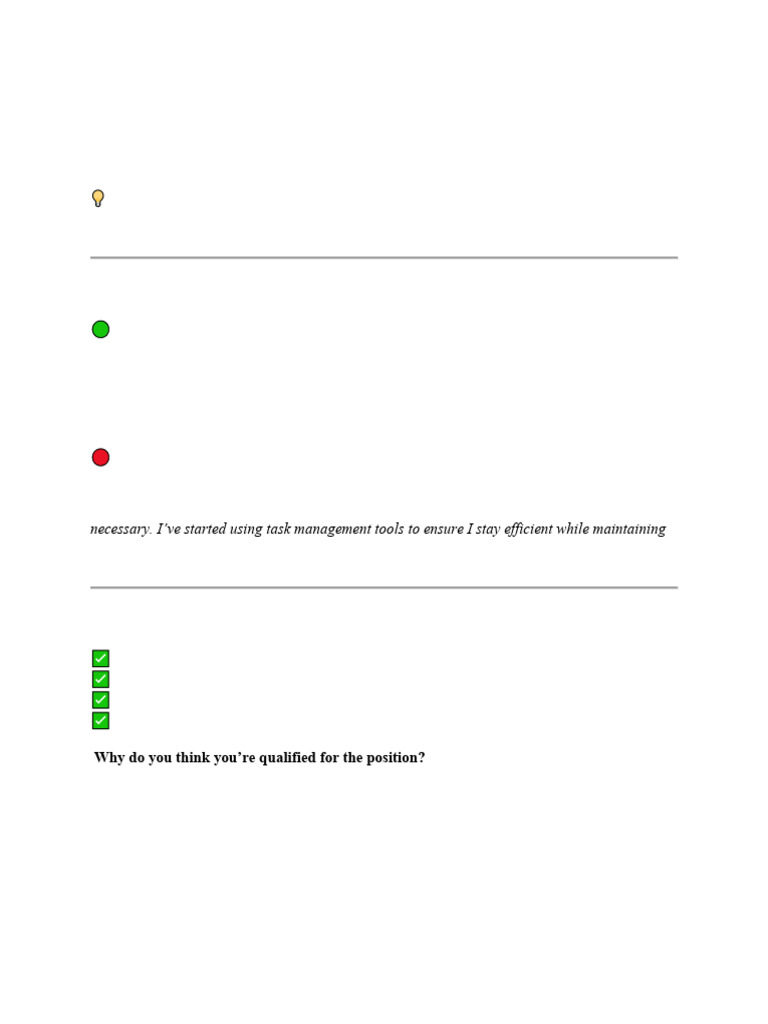 Tip: When discussing strengths, focus on qualities that match the job role. For weaknesses,