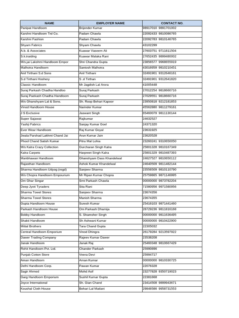 Central Handloom Emporium Vinod Dhingra 26179284 9213597922