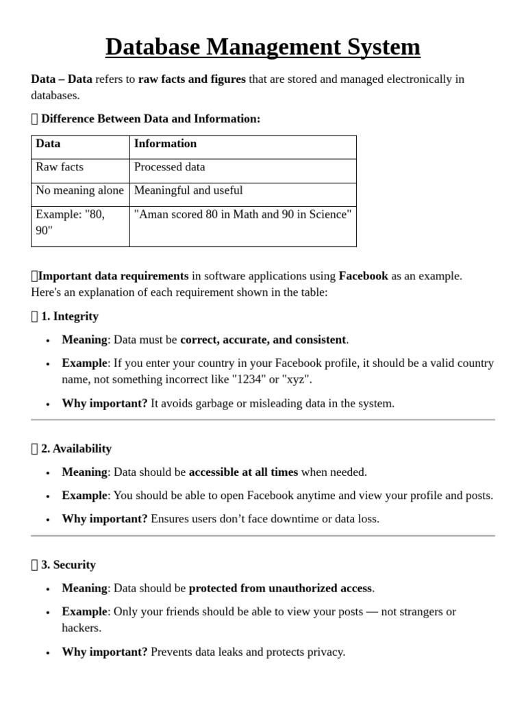 Data – Data refers to raw facts and figures that are stored and managed electronically in
