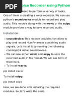 To use PyAudio, first instantiate PyAudio using pyaudio.PyAudio() (1), which sets up the portaudio system.