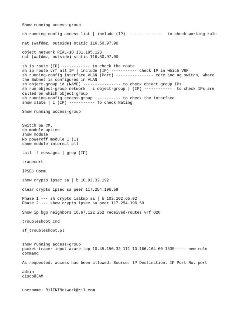 sh run object-group network | i object-group | (IP) ------------ to check IPs are