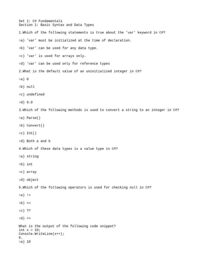 1.Which of the following statements is true about the 'var' keyword in C#?