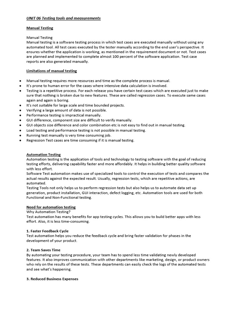 generation, product installation, GUI interaction, defect logging, etc. Automation tools are used for both