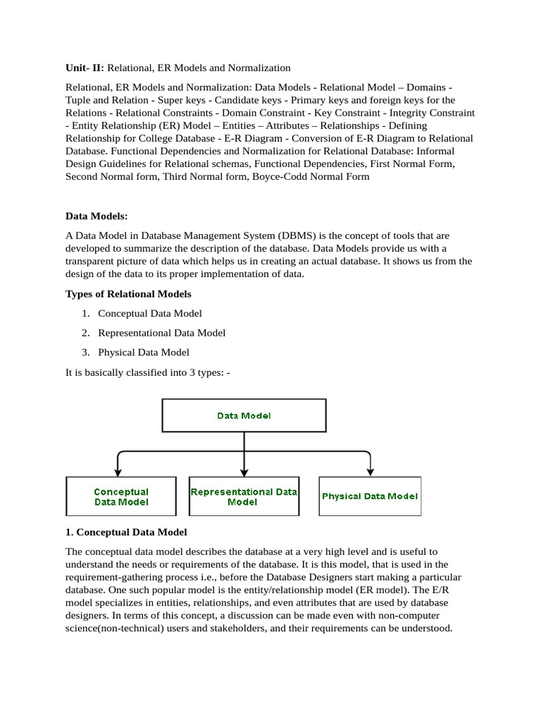 A Data Model in Database Management System (DBMS) is the concept of tools that are