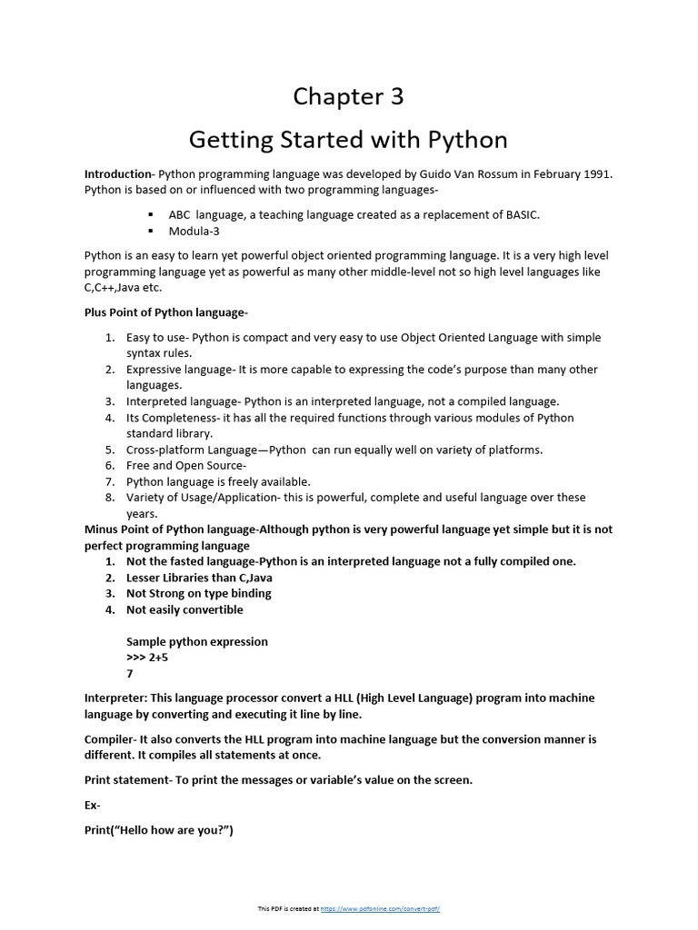 Introduction- Python programming language was developed by Guido Van Rossum in February 1991.