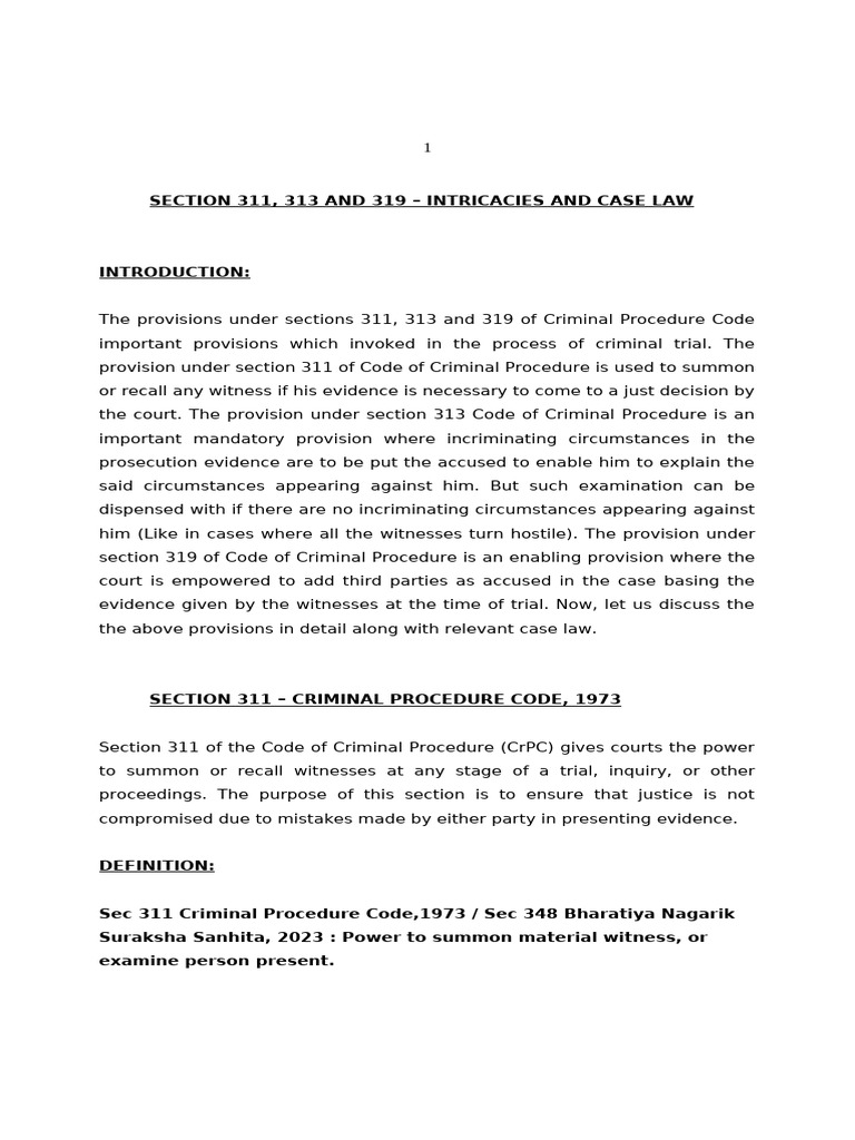 SECTION 311, 313 AND 319 – INTRICACIES AND CASE LAW