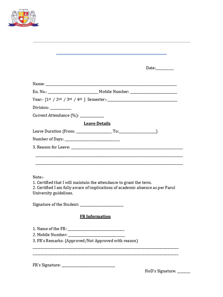 STUDENT LEAVE APPLICATION FORM