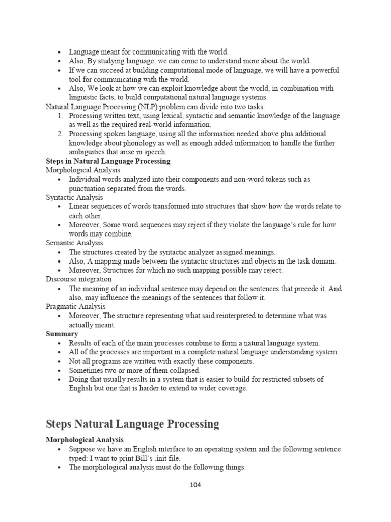 1. Processing written text, using lexical, syntactic and semantic knowledge of the language