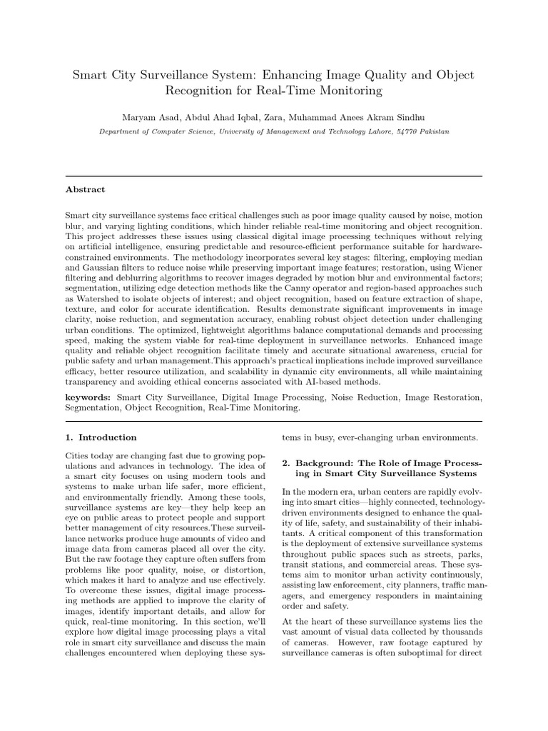 keywords: Smart City Surveillance, Digital Image Processing, Noise Reduction, Image Restoration,