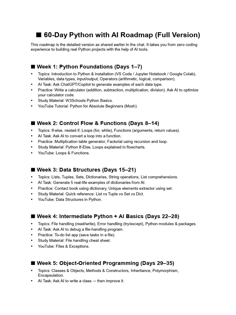 This roadmap is the detailed version as shared earlier in the chat. It takes you from zero coding