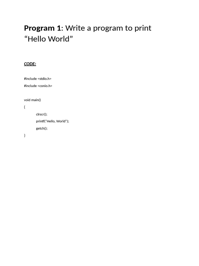 Program 1: Write a program to print