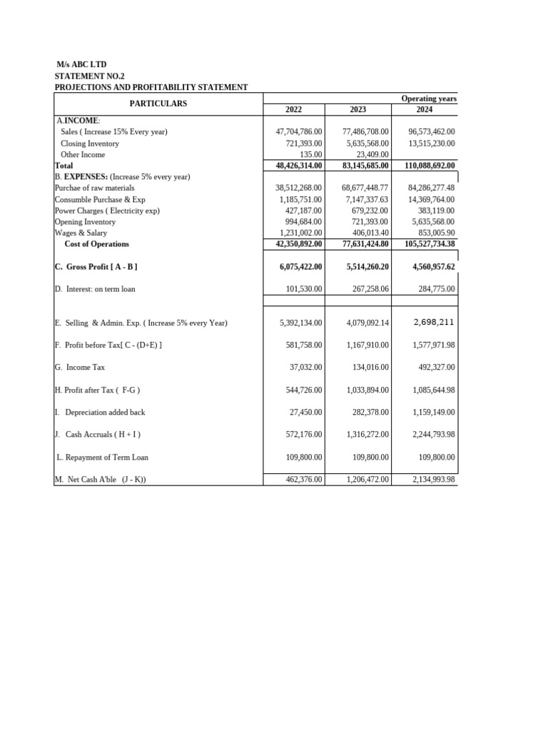 E. Selling & Admin. Exp. ( Increase 5% every Year) 5,392,134.00 4,079,092.14 2,698,211