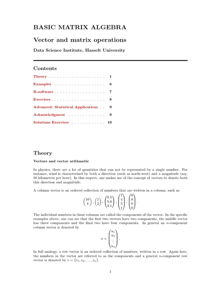 and “∗” can be used. Vector and matrix multiplication are indicated by the operator “%∗%”.