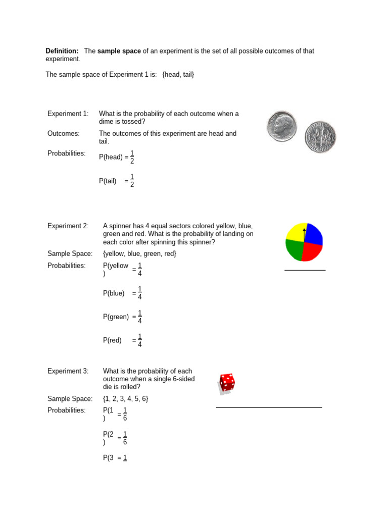 Sample Space: {1, 2, 3, 4, 5, 6}