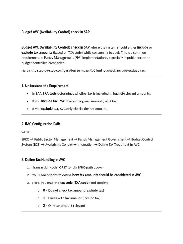 Budget AVC (Availability Control) check in SAP where the system should either include or