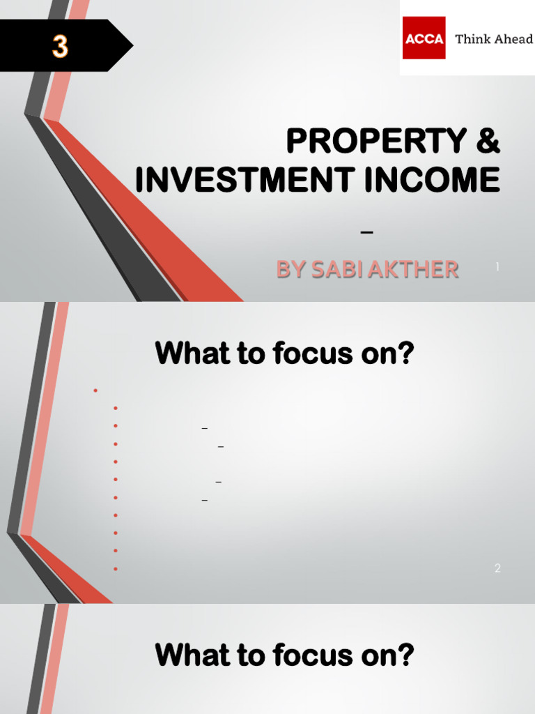 Objective: To explain in detail the tax treatment of property income derived from the letting of