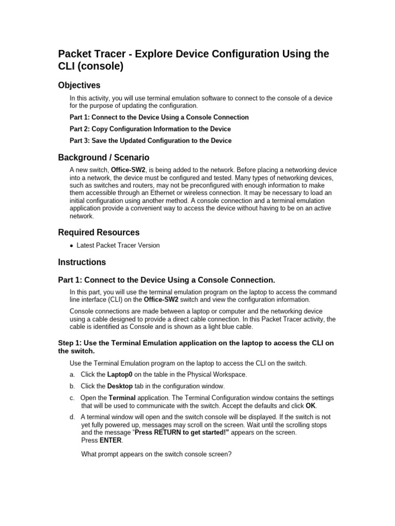 In this activity, you will use terminal emulation software to connect to the console of a device
