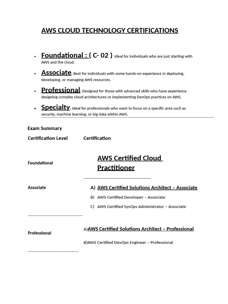 AWS CLOUD TECHNOLOGY CERTIFICATIONS
