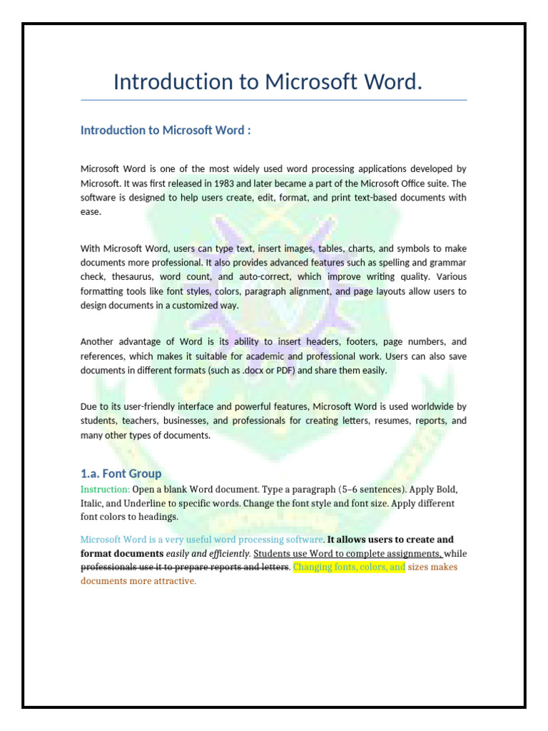 Introduction to Microsoft Word :