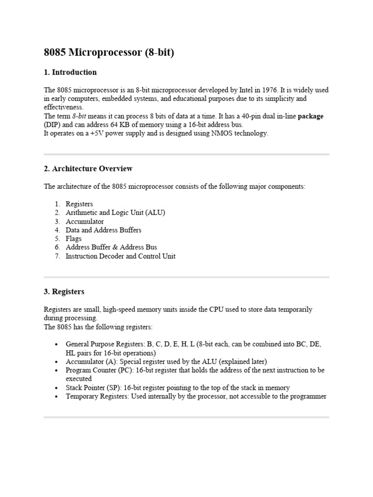 The 8085 microprocessor is a classic and foundational CPU in computer engineering history. Its