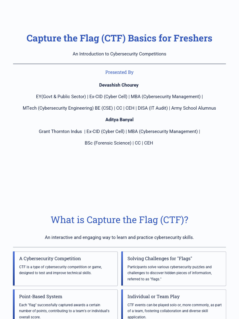 • CTFs are a unique blend of fun, hands-on learning, and a significant boost to your career growth.