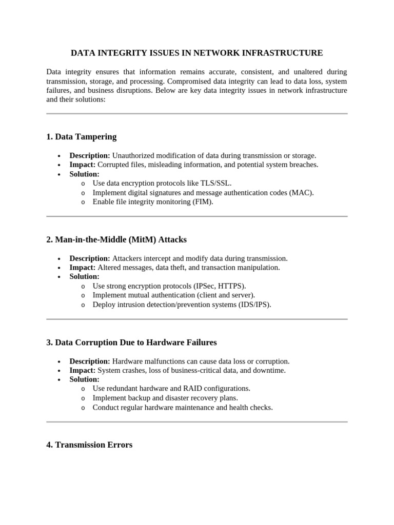 failures, and business disruptions. Below are key data integrity issues in network infrastructure