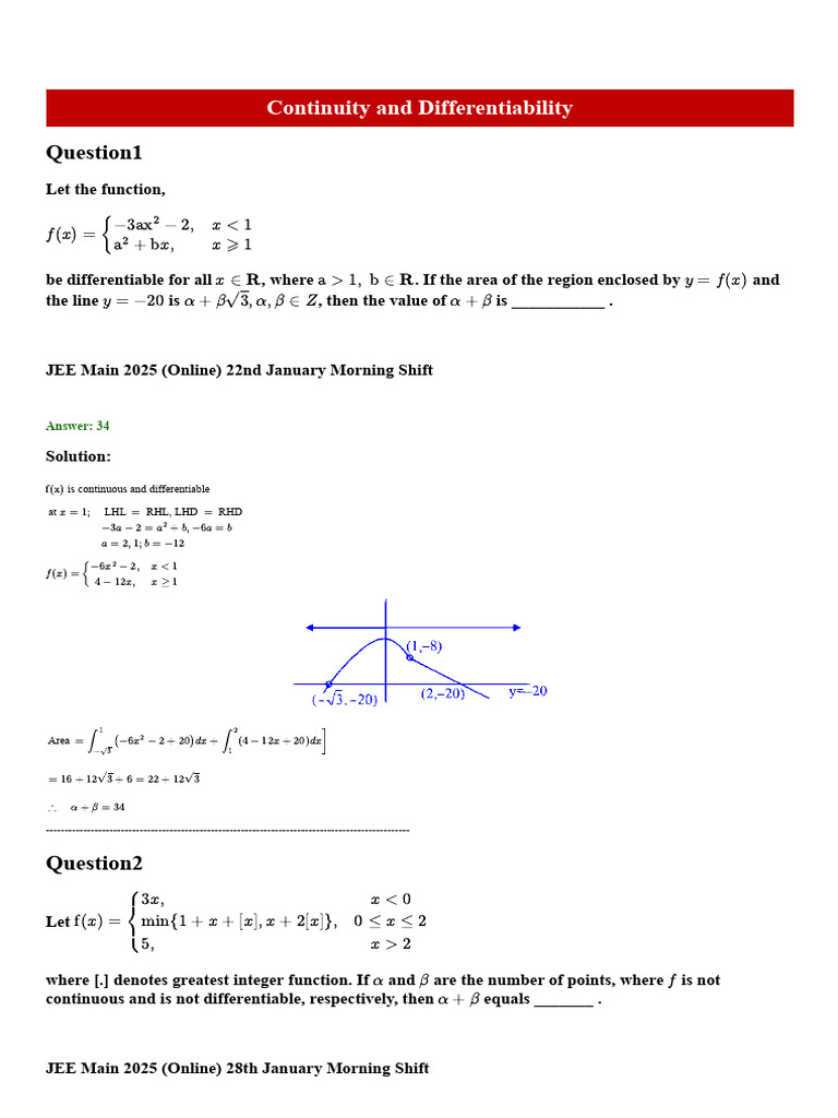continuous and is not differentiable, respectively, then α + β equals _______ .