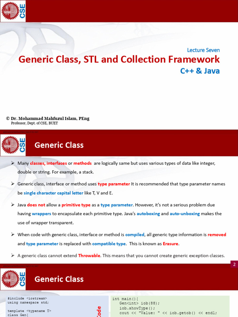 Lecture 7 Generic Class, STL and Collection Framework