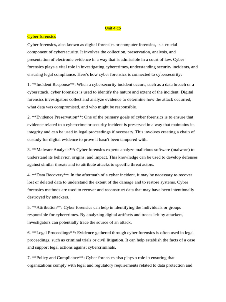 ensuring legal compliance. Here's how cyber forensics is connected to cybersecurity: