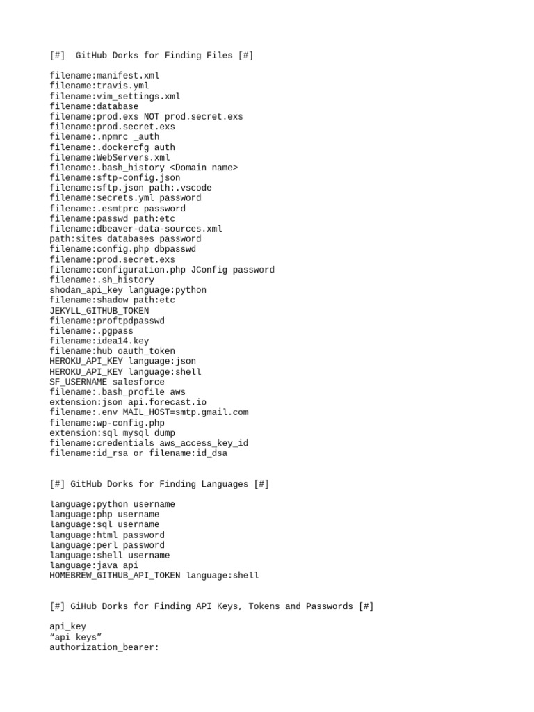 [#] GitHub Dorks for Finding Files [#]