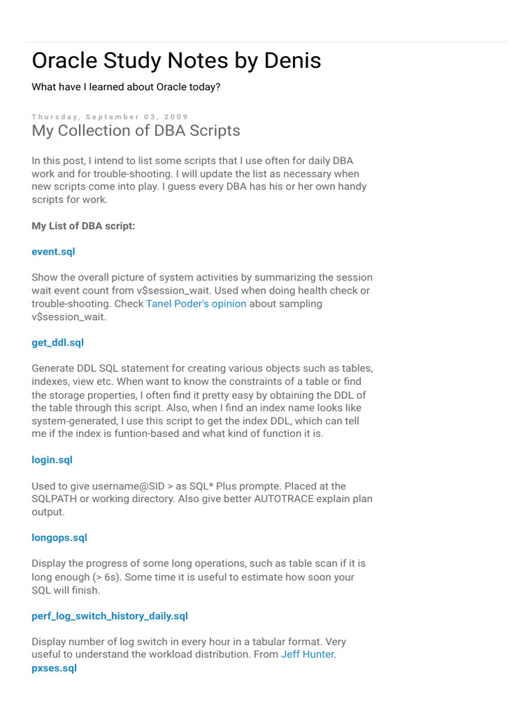 My List of DBA script: