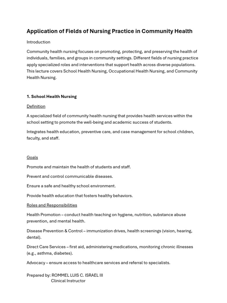 Fields of Nursing Practice in Community Health