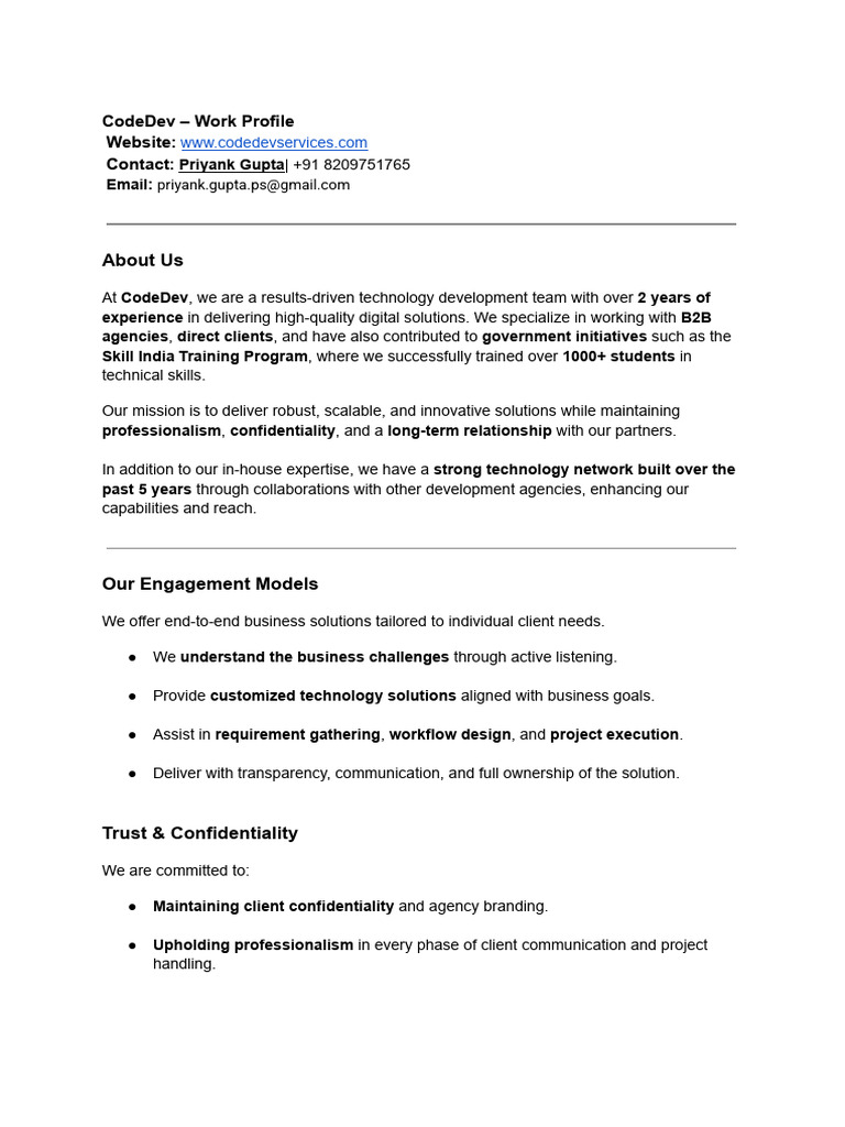 At CodeDev, we are a results-driven technology development team with over 2 years of