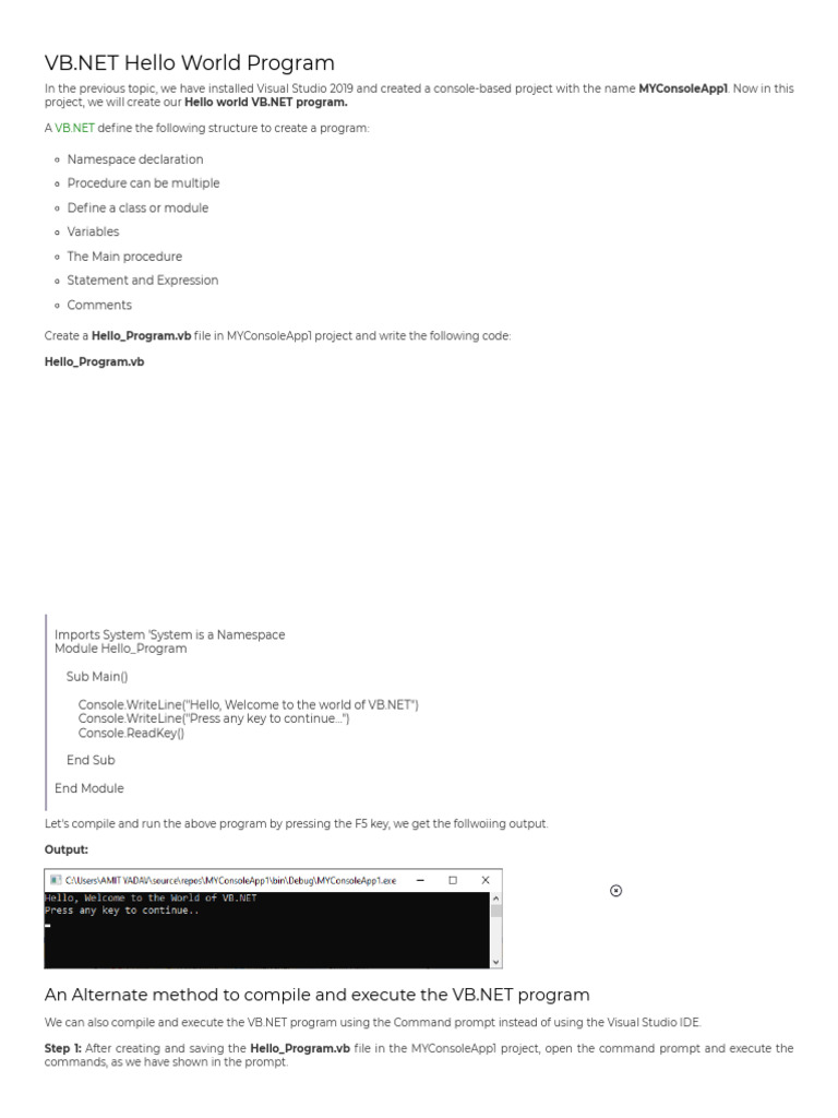 We can also compile and execute the VB.NET program using the Command prompt instead of using the Visual Studio IDE.